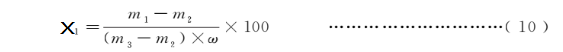 18.2 以干物质计,酸不溶性灰分的含量,按式(10)计算:
